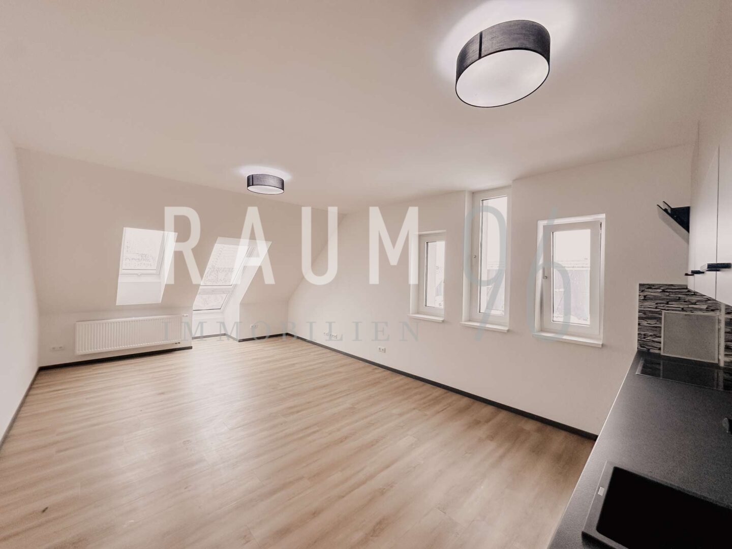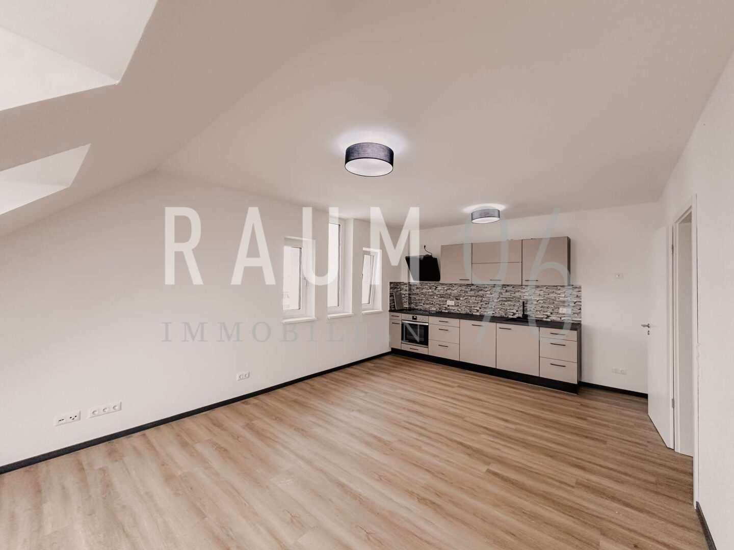 Herzstück der Wohnung ist der helle und offen gestaltete Wohn- und Essbereich mit integrierter Küche. Große Fensterflächen sowie die charmanten Dachschrägen verleihen dem Raum eine besonders freundliche, gemütliche Atmosphäre. Die moderne und voll ausgestattete Einbauküche wird mit vermietet.