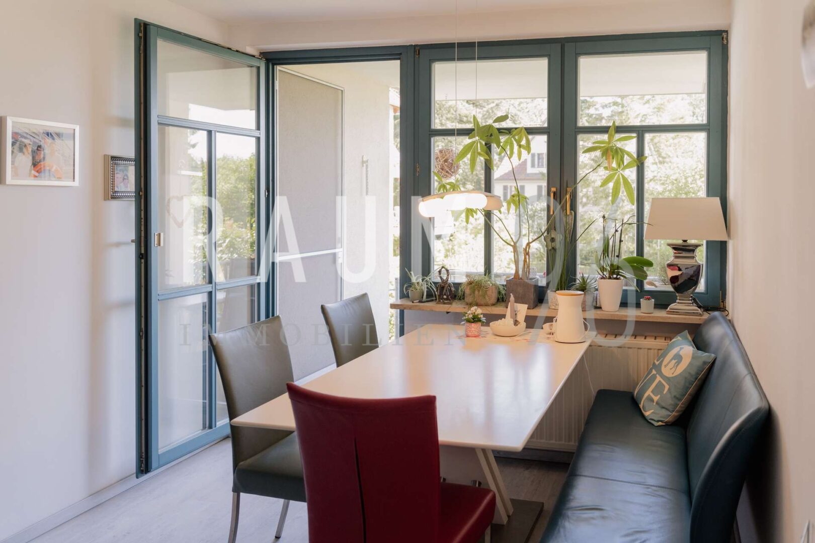 Die Wohnung präsentiert sich mit gehobener Ausstattung, darunter hochwertiger Vinylboden und Fliegenschutztüren an Balkon und im Schlafzimmer. Das geräumige Badezimmer, ausgestattet mit einem Tageslichtfenster, beherbergt eine großzügige Regendusche mit beheizter Sitzbank (neu aus dem Jahr 2014) sowie einen Waschmaschinenanschluss. Die Einbauschränke von Richter+Frenzel bleiben erhalten, und ein integriertes Radio sorgt für zusätzlichen Komfort.