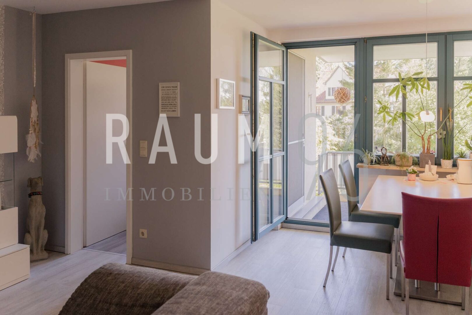 Willkommen in dieser sonnigen 2-Zimmer Wohnung, die durch ihre erstklassige Lage und hochwertige Ausstattung besticht. Beim Betreten werden Sie von einem großzügigen Flur empfangen, der Sie in den hellen Wohn- und Essbereich führt. Von hier aus genießen Sie Zugang zum überdachten Balkon mit einem idyllischen Blick ins Grüne.
