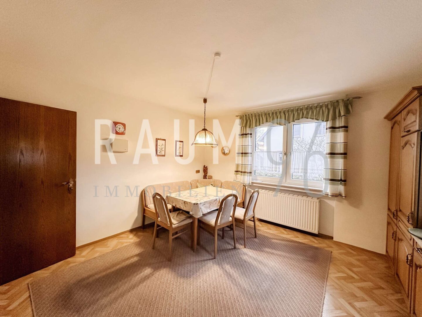 Bereits beim Betreten des Hauses empfängt Sie ein freundlicher und einladender Eingangsbereich mit Treppenaufgang ins Obergeschoss sowie Zugang zum Keller. Das Erdgeschoss überzeugt durch eine durchdachte Raumaufteilung: Ein großzügiges Esszimmer bildet den Mittelpunkt für gemeinsame Stunden, während der Garderobenbereich, eine praktische Abstellkammer und ein separates Gäste-WC den Wohnkomfort abrunden.