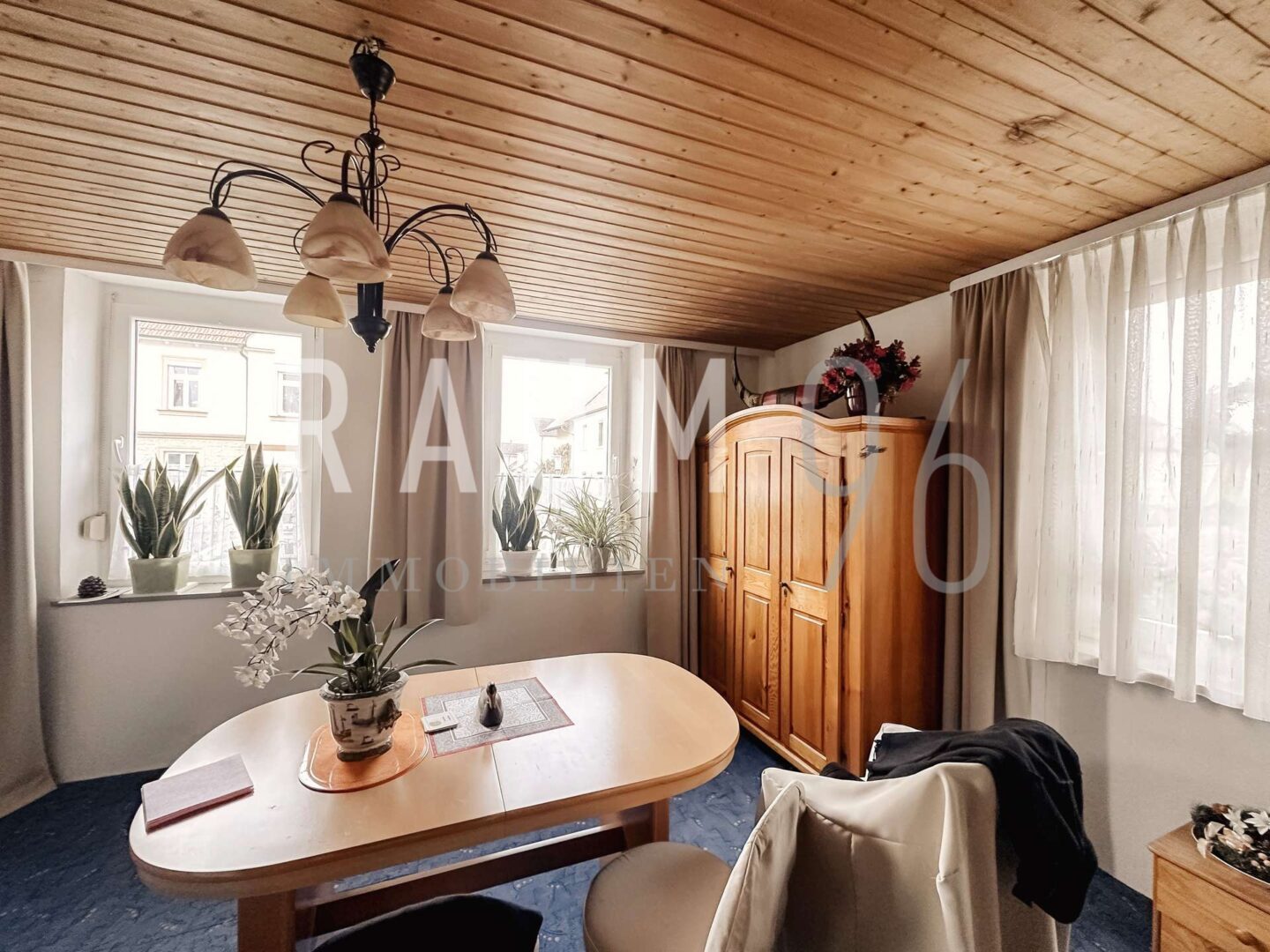 Im Erdgeschoss sowie im 1. Obergeschoss befinden sich jeweils identische 3-Zimmer-Wohnungen mit einer Wohnfläche von ca. 70 m². Im Dachgeschoss ist eine 2-Zimmer-Wohnung mit ca. 50 m² Wohnfläche untergebracht. Die Dachgeschosswohnung wurde im Jahr 2016 vollständig renoviert, einschließlich neuer Bodenbeläge. In diesem Zuge wurde auch eine Einbauküche installiert, die mit vermietet wird. Zudem wurde der Ölofen im Jahr 2024 erneuert.