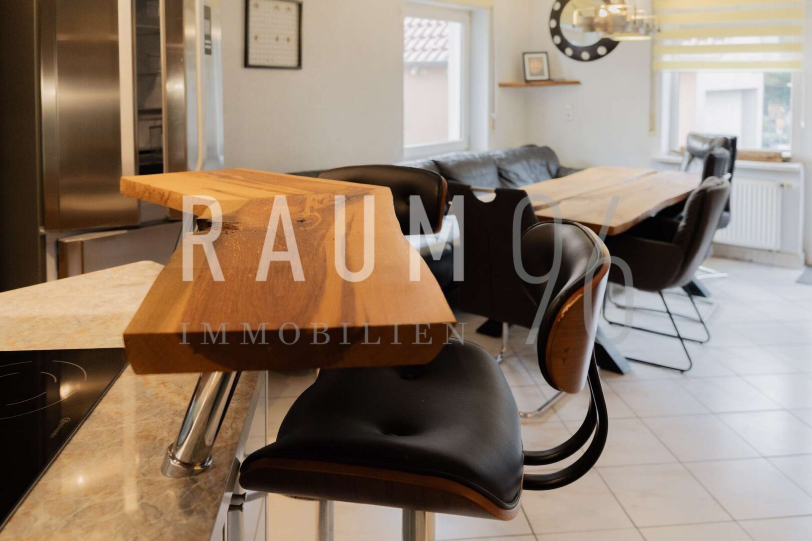 Der Eingangsbereich führt Sie in das Treppenhaus und zur Wohnung im Erdgeschoss mit 85m². Hier erwartet Sie eine liebevoll gestaltete Wohnung mit Garderobe und dem Herzstück – der offenen, holzdominierten Küche mit angrenzendem Essbereich. Die großzügige Terrasse befindet sich in Westausrichtung, mit ca. 15 m² Fläche und einem Holzbelag aus Bangkirai.